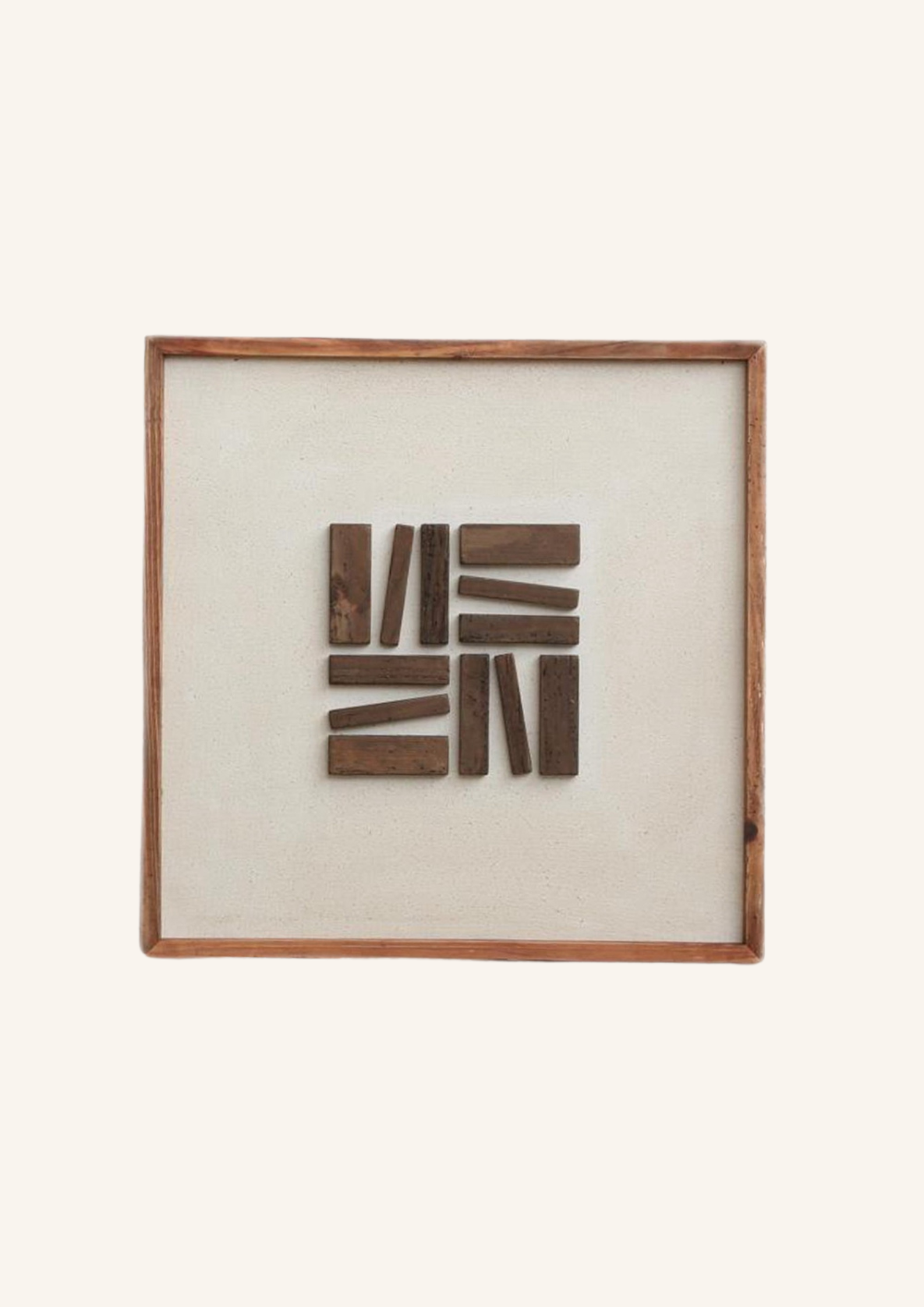 • Technika: ręczne układanie elementów drewnianych na płótnie strukturalnym